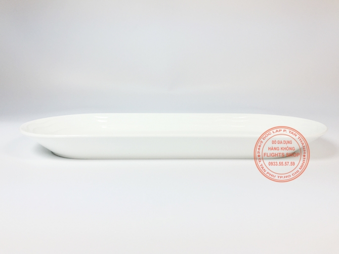 Đĩa sứ bánh mì của Emirates. Sứ xương cao cấp loại I, không giòn, không lỗi. Đĩa trắng trơn, vân chìm độc đáo. Chiều dài 24cm, rộng 7cm. Men sứ màu trắng tinh, có in logo Emirates dưới đáy. Hàng dùng trên khoang hạng thương gia của Emirates.