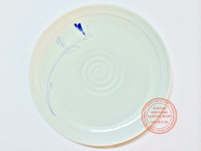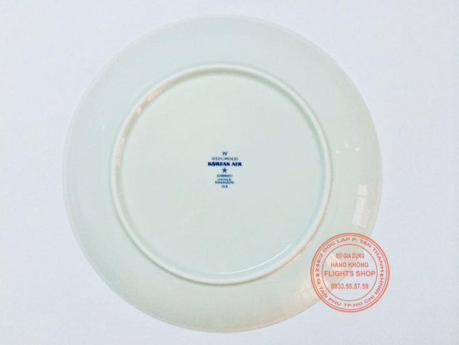 Đĩa sứ tròn loại lớn của Korean Air. Sứ cao cấp loại I, không giòn, không lỗi. Đĩa trắng xanh, họa tiết nhẹ nhàng, độc đáo. Đường kính 30cm. Men sứ màu trắng xanh, có in logo Korean Air dưới đáy.