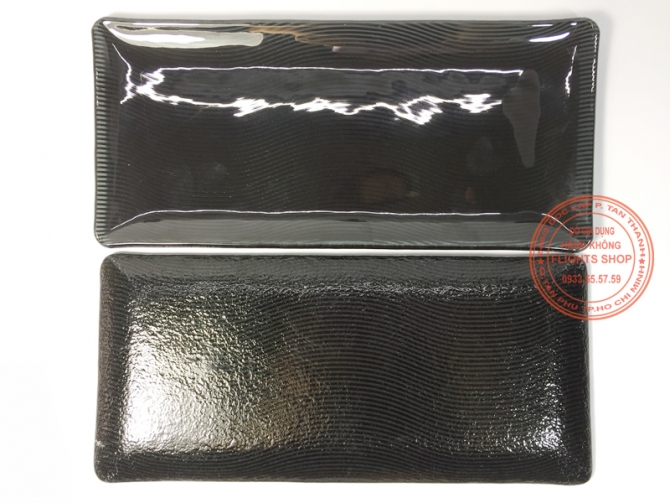 Đĩa thủy tinh chữ nhật của Qatar Airways, màu đen. Thủy tinh cao cấp loại I, không giòn, không lỗi bọt khí. Đĩa đen sọc nhuyễn, nhẹ nhàng, tinh tế. Chiều dài 25cm, chiều rộng 10cm. Đĩa không có hoa văn nên thích hợp trang trí các món ăn theo sở thích cá nhân. Hàng dùng trên khoang hạng thương gia của hãng hàng không 5 sao Qatar Airways.